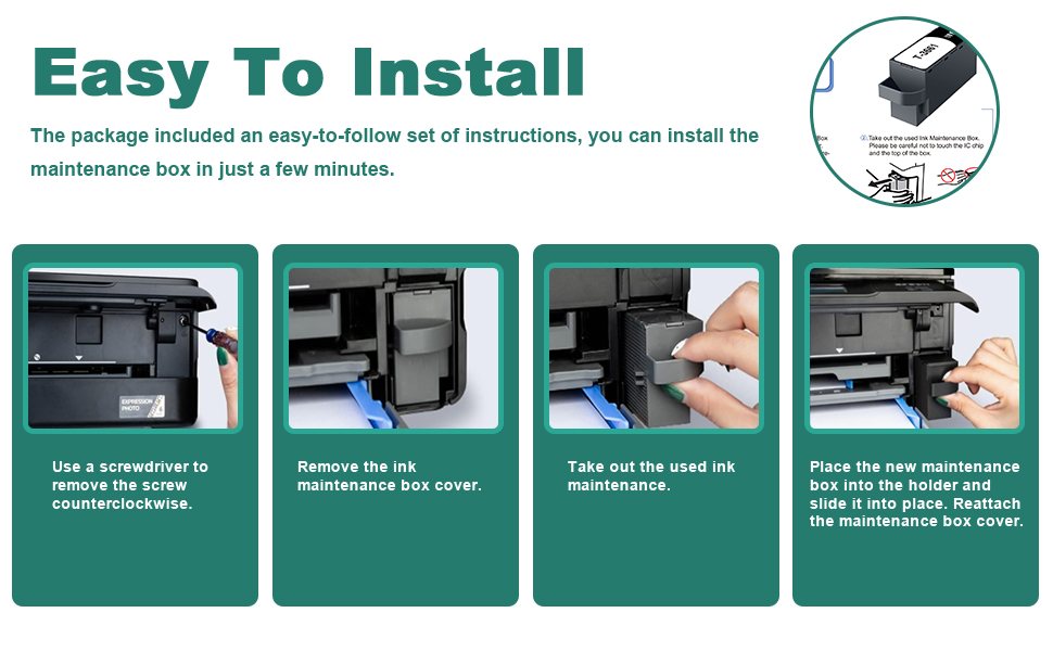 5. Simple operation: The t3661 ink maintenance kit will send you a complete operation manual and detailed installation instructions to ensure a user-friendly experience and make the installation process simple and worry-free.